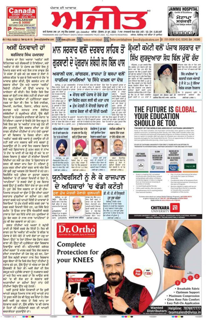 - Targeted Audience: With a dedicated and loyal reader base, especially in Punjab, India, and international Punjabi communities, Ajit ensures that your message is reaching the right people.