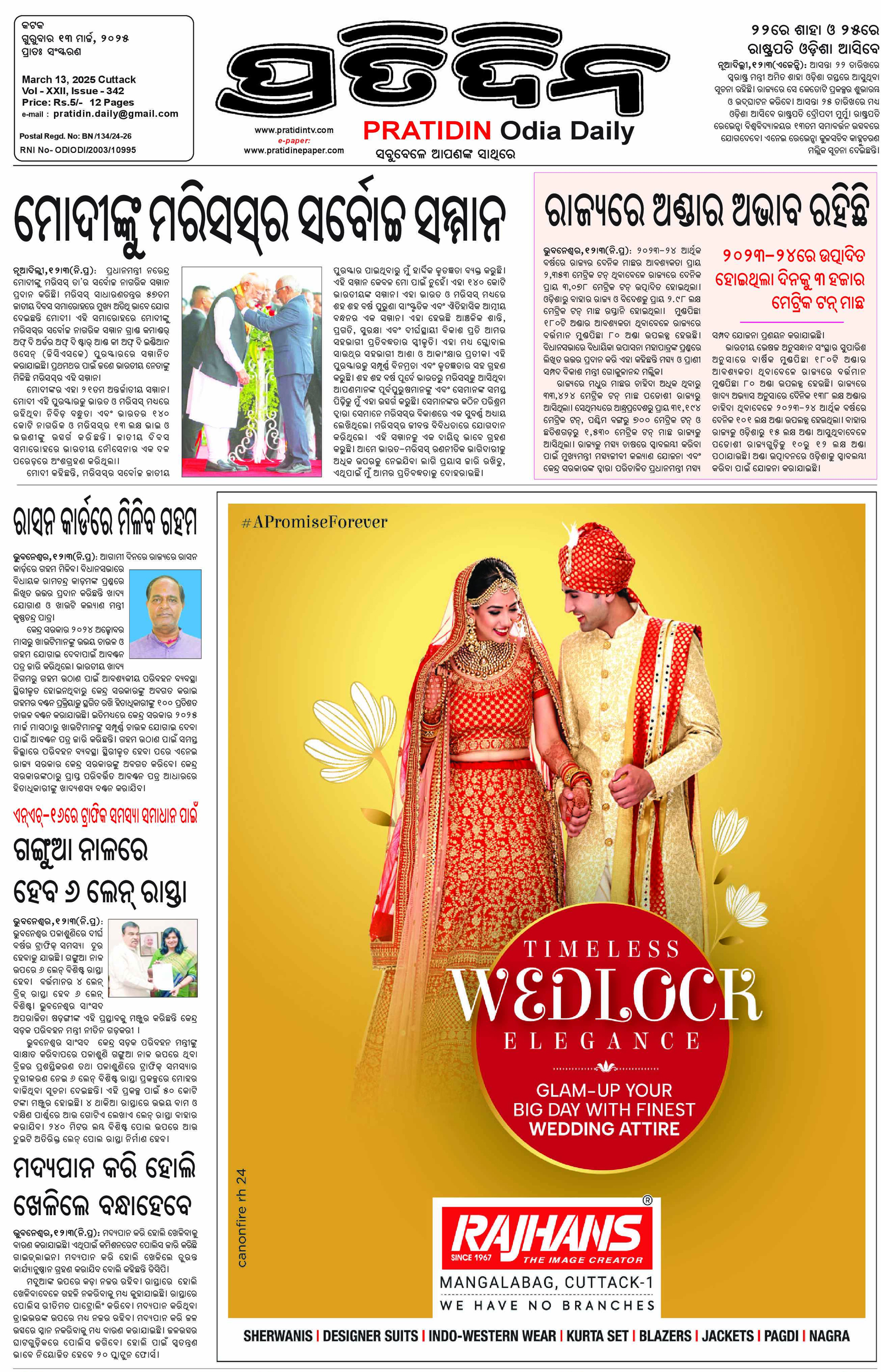 Pratidin is a well-established Odia-language newspaper with a strong readership base across Odisa, making it an excellent choice for advertisements. Its comprehensive coverage of politics, business, sports, entertainment, and social issues attracts a diverse audience, including professionals, students, and business owners. By advertising in Pratidin, businesses can effectively reach the Odia-speaking population, ensuring high visibility for their products, services, job postings, and public notices.