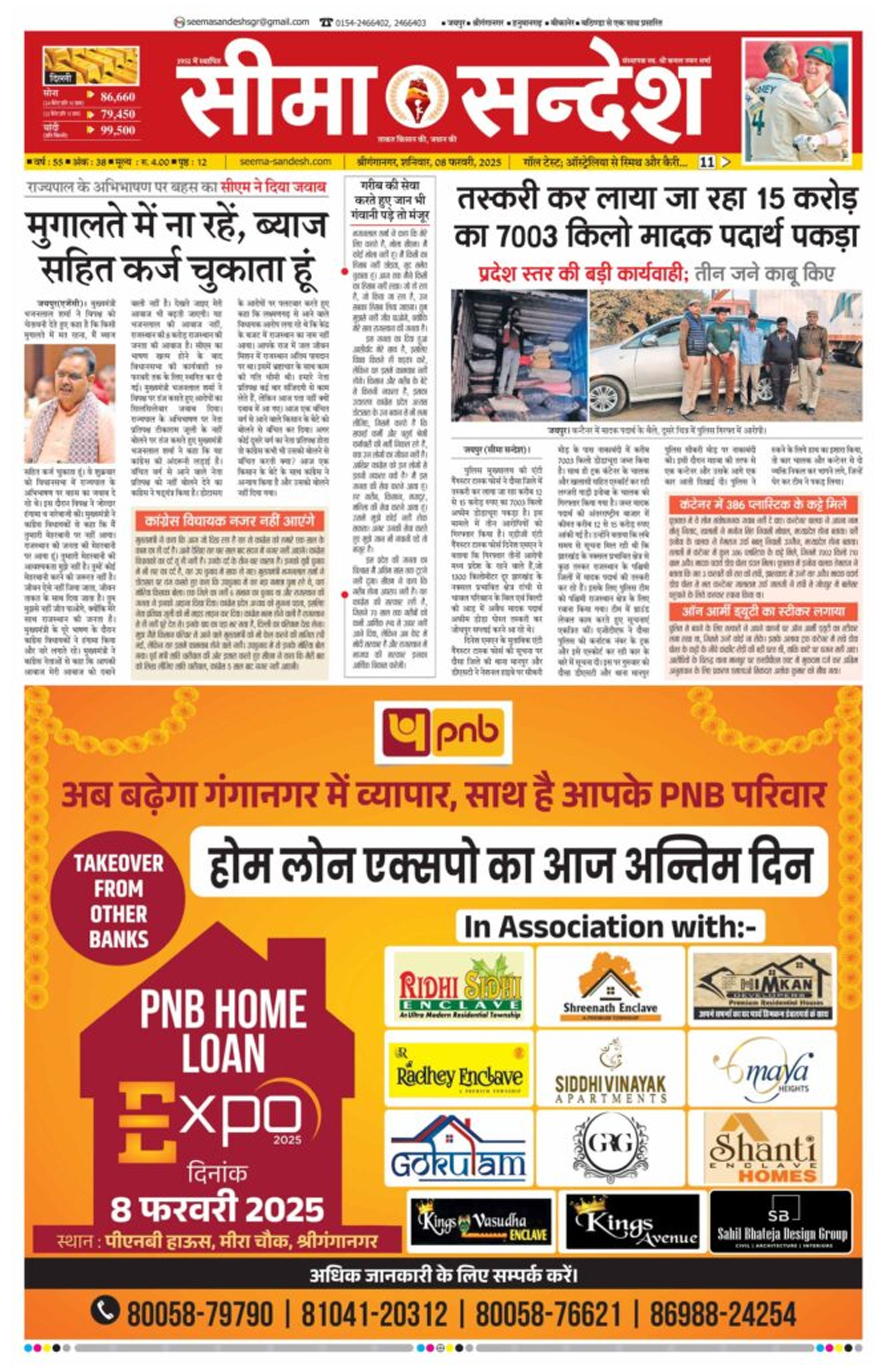 Seema Sandesh is a prominent Hindi-language daily newspaper based in Rajasthan, India. Established with a commitment to delivering accurate and timely news, it has gained a strong readership across Rajasthan and neighboring states. The newspaper covers a wide range of topics, including politics, business, sports, entertainment, and local affairs, making it a trusted source of information for Hindi-speaking audiences. With its deep regional focus, Seema Sandesh has established itself as a reliable medium for news dissemination, particularly among readers interested in Rajasthan’s socio-political and economic developments.